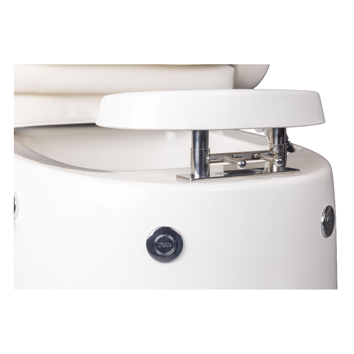 Top massage chair with manual kneading massage function with normal armrest. Fiberglass basin with magnetic jet pump, with discharge pump
